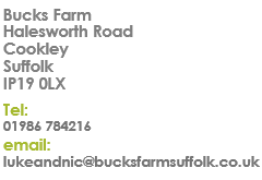Tel: 01986 784216 Mob: 07913 963895 / 07774 142583 email: lukeandnic@bucksfarmsuffolk.co.uk
